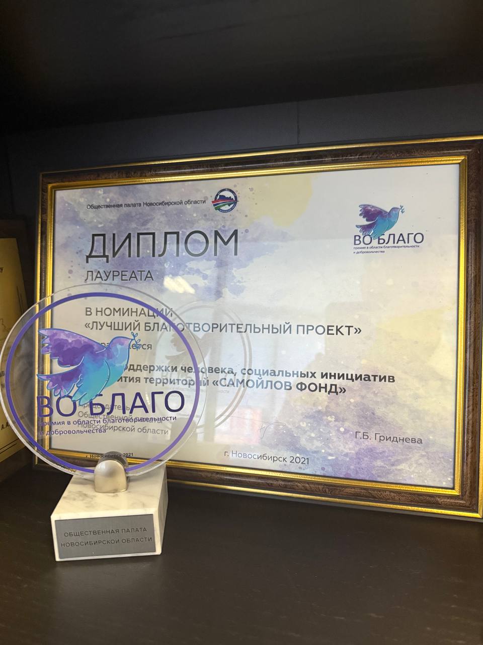 За реализацию проекта "БИБЛБИЗ", в рамках которого мы устанавливаем полки с лучшей бизнес литературой в сельских библиотеках Новосибирской области, САМОЙЛОВ ФОНД стал лауреатом премии Общественной палаты Новосибирской области «Во Благо» в номинации "Лучший благотворительный проект"
